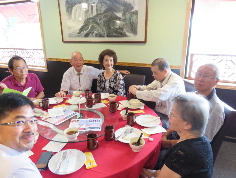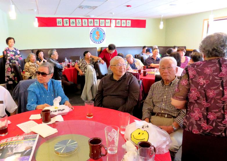 聚會場地很寬敞,來賓坐滿八張大圓桌,非常熱鬧,