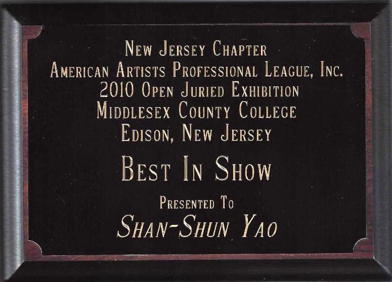 2010 Best in Show ..........NJ Chapter - American Artists Professional League, Inc. ..........2010 Open State Juried Exhibition of Representational Art ..........Middlesex County College Center Gallery, Edison, NJ, USA