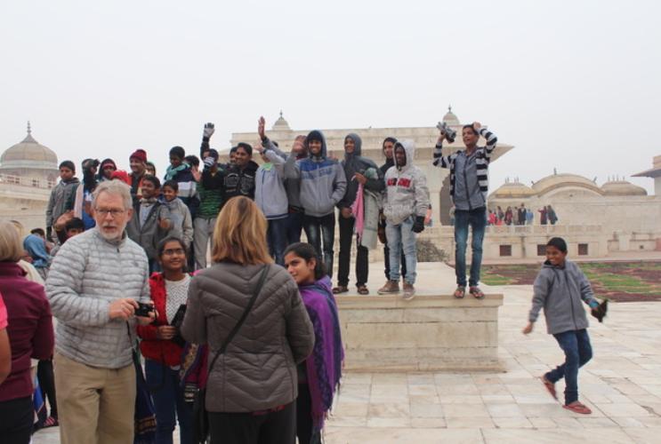 Took a picture with Indian high school students who are on a field trip to Agra Fort