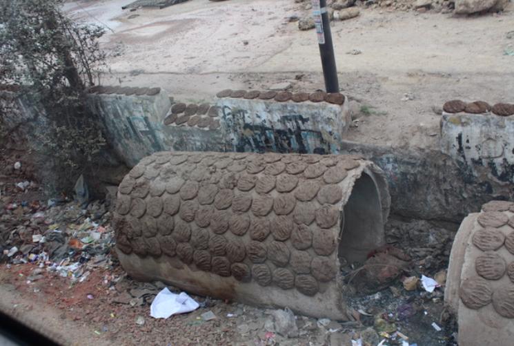 牛糞餅在路邊曬乾