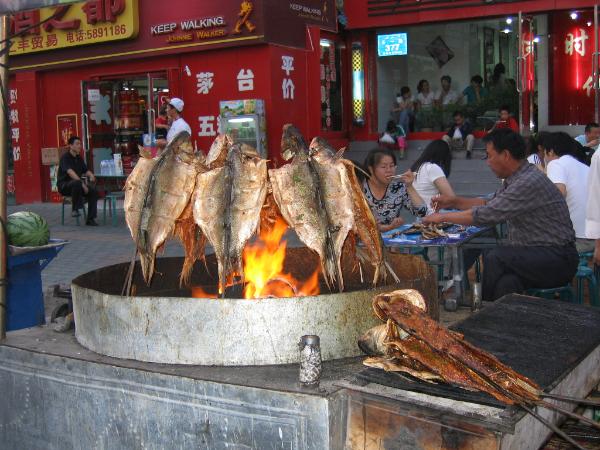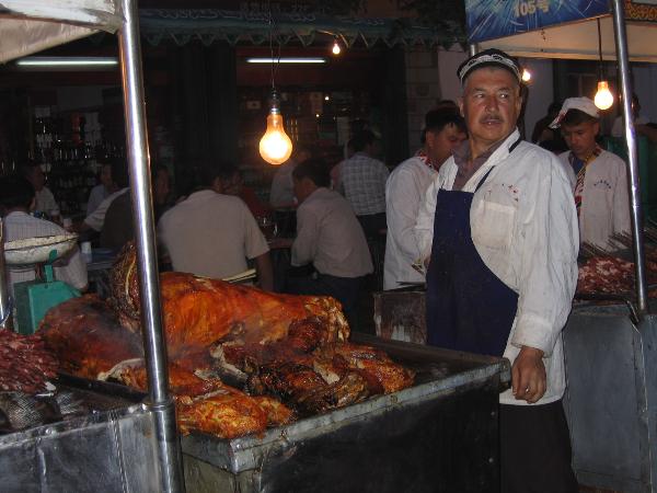 烏魯木齊的夜市﹐ 人擠人的地方﹐非常的熱鬧﹐ 賣燒烤的攤位很多﹐ 看他們戴的帽子﹐