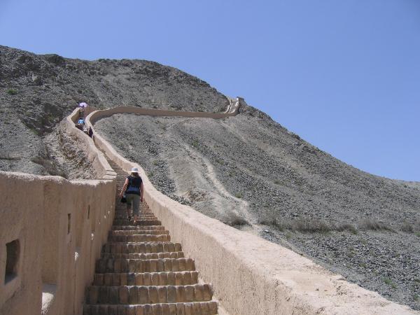 爬長城又是體力的一大考驗了﹐ 又陡又長﹐ 太陽晒得不得了﹐ 像火在那裡烤一樣﹐